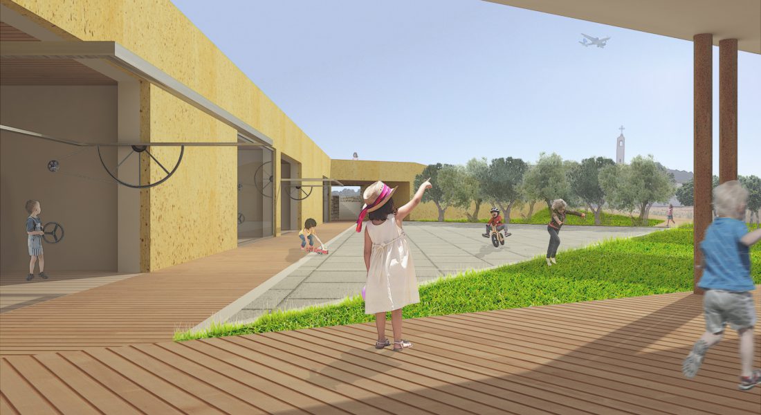 Name Scuole Innovative Type Concorso Location Olbia Year 2016 Phase Preliminare Size 1200mq Il progetto prevede la realizzazione di un polo scolastico (materna ed elementari). L’idea è quella di realizzare un edificio che si snoda lungo i perimetri laterali dell’area d’intervento per dare vita ad un piccolo borgo, le cui facciate si aprono alla città